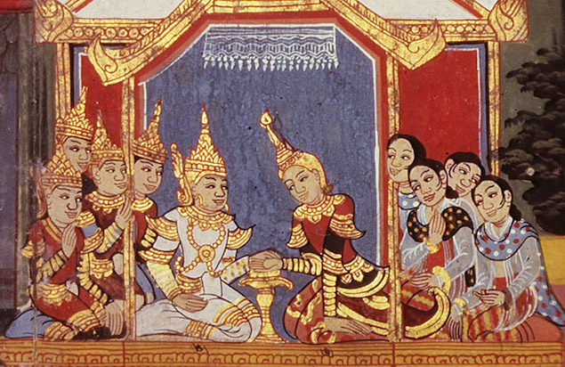 Young Prince Siddhartha with his bride and servants