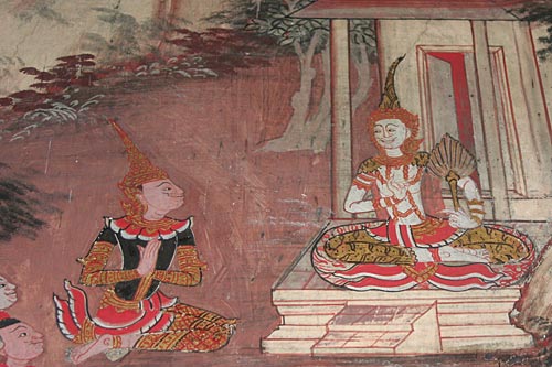 Sunanda looked up but was so dazzled by the Bodhisatta’s beauty that he did not recognize him at first. Again Temiya identified himself. Suddenly Sunanda understood and fell at his feet, stammering that he would be honored to escort the prince home to inherit the kingdom. He who was destined for Buddhahood chided him, for nothing would deter him now from leading the pure meditative life. He described his previous existence and subsequent generations in hell and then ordered Sunanda to return to the palace immediately to tell his parents that he was still alive and thus spare them unnecessary grief over the loss of their only son.