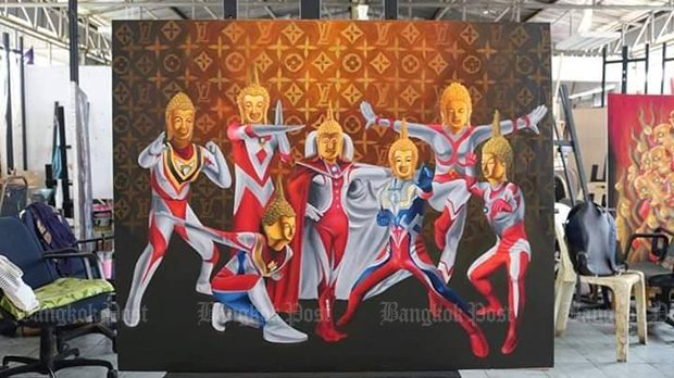 A student at Nakhon Ratchasima Rajabhat University recently stirred up controversy after her paintings — which depicted Lord Buddha as the 1970s Japanese superhero — went on show at an exhibition in a shopping mall in Nakhon Ratchasima last week.