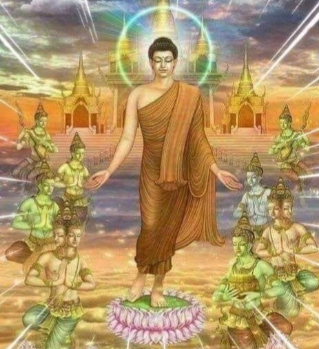The Silent Buddha [Generosity] Once upon a time, there was a very rich man living in Benares, in northern India. When his father died, he inherited even more wealth. He thought, “Why should I use this treasure for myself alone? Let my fellow beings also benefit from these riches.” So he built dining halls at the four gates of the city — North, East, South and West. In these halls he gave food freely to all who wished it. He became famous for his generosity. It also became known that he and his followers were practicers of the Five Training Steps. In those days, there was a Silent Buddha meditating in the forest near Benares. He was called Buddha because he was enlightened. This means that he no longer experienced himself, the one called ‘I’ or ‘me’, as being in any way different from all life living itself. So he was able to experience life as it really is, in every present moment. Being one with all life, he was filled with compassion and sympathy for the unhappiness of all beings. So he wished to teach and help them to be enlightened just as he was. But the time of our story was a most unfortunate time, a very sad time. It was a time when no one else was able to understand the Truth, and experience life as it really is. And since this Buddha knew this, that was why he was Silent. While meditating in the forest, the Silent Buddha entered into a very high mental state. His concentration was so great that he remained in one position for seven days and nights, without eating or drinking. When he returned to the ordinary state, he was in danger of dying from starvation. At the usual time of day, he went to collect alms food at the mansion of the rich man of Benares. When the rich man had just sat down to have lunch, he saw the Silent Buddha coming with his alms bowl. He rose from his seat respectfully. He told his servant to go and give alms to him. Meanwhile, Mara, the god of death, had been watching. Mara is the one who is filled with greed for power over all beings. He can only have this power because of the fear of death. Since a Buddha lives life fully in each moment, he has no desire for future life, and no fear of future death. Therefore, since Mara could have no power over the Silent Buddha, he wished to destroy him. When he saw that he was near death from starvation, he knew that he had a good chance of succeeding. Before the servant could place the food in the Silent Buddha’s alms bowl, Mara caused a deep pit of red hot burning coals to appear between them. It seemed like the entrance to a hell world. When he saw this, the servant was frightened to death. He ran back to his master. The rich man asked him why he returned without giving the alms food. He replied, “My lord, there is a deep pit full of red hot burning coals just in front of the Silent Buddha.” The rich man thought, “This man must be seeing things!” So he sent another servant with alms food. He also was frightened by the same pit of fiery coals. Several servants were sent, but all returned frightened to death. Then the master thought, “There is no doubt that Mara, the god of death, must be trying to prevent my wholesome deed of giving alms food to the Silent Buddha. Because wholesome deeds are the beginning of the path to enlightenment, this Mara wishes to stop me at all costs. But he does not understand my confidence in the Silent Buddha and my determination to give.” So he himself took the alms food to the Silent Buddha. He too saw the flames rising from the fiery pit. Then he looked up and saw the terrible god of death, floating above in the sky. He asked, “Who are you.?” Mara replied, I am the god of death!” “Did you create this pit of fire?” asked the man. “I did,” said the god. “Why did you do so?” “To keep you from giving alms food, and in this way to cause the Silent Buddha to die! Also to prevent your wholesome deed from helping you on the path to enlightenment, so you will remain in my power!” The rich man of Benares said, “Oh Mara, god of death, the evil one, you cannot kill the Silent Buddha, and you cannot prevent my wholesome giving! Let us see whose determination is stronger!” Then he looked across the raging pit of fire, and said to the calm and gentle Enlightened One, “Oh Silent Buddha, let the light of Truth continue to shine as an example to us. Accept this gift of life!” So saying, he forgot himself entirely, and in that moment there was no fear of death. As he stepped into the burning pit, he felt himself being lifted up by a beautiful cool lotus blossom. The pollen from this miraculous flower spread into the air, and covered him with the glowing colour of gold. While standing in the heart of the lotus, the Great Being poured the alms food into the bowl of the Silent Buddha. Mara, god of death, was defeated!