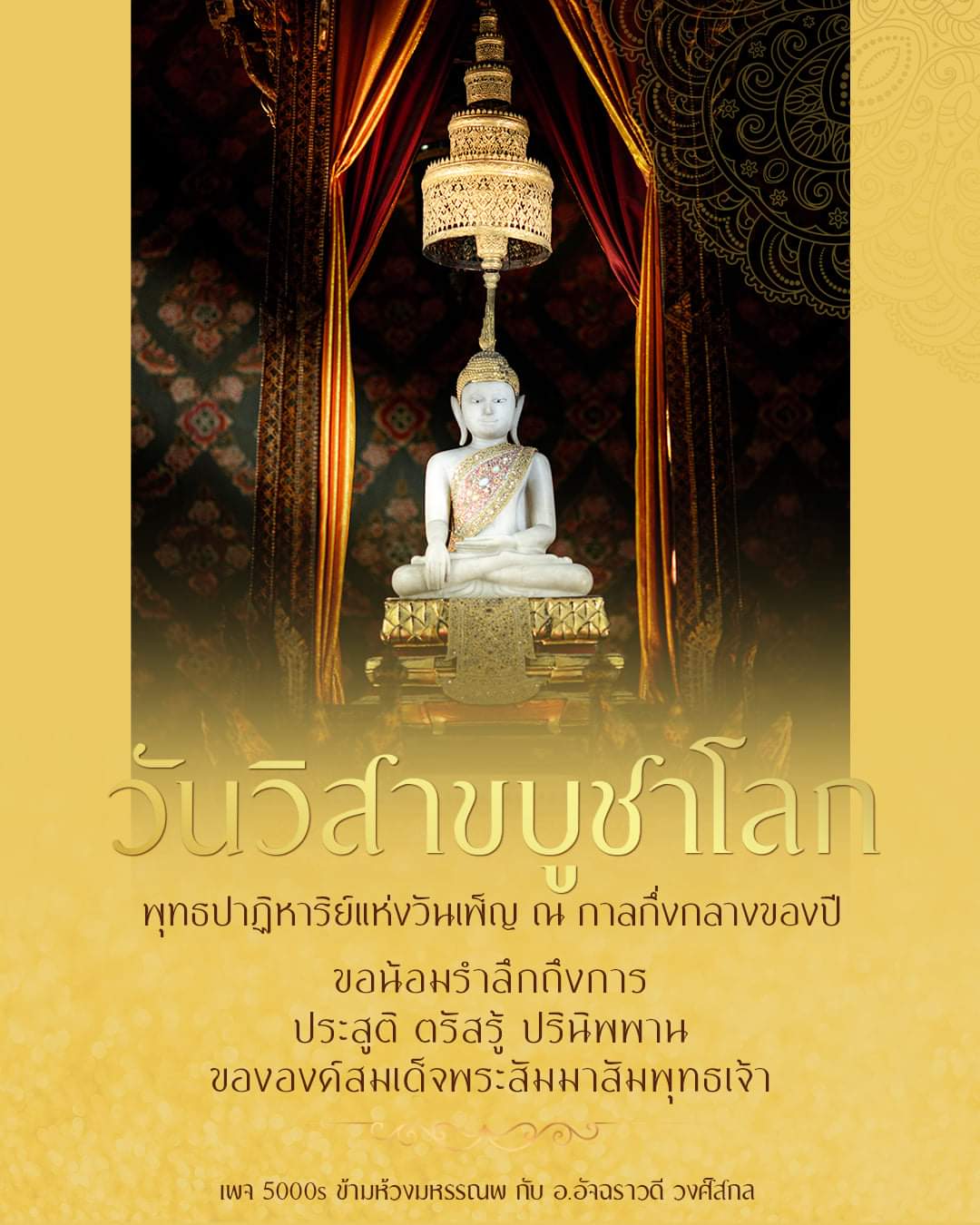 On this important day of Buddhism, Buddhists should commemorate the grace of the Buddha, follow his teachings by practicing giving, observing precepts, practicing meditation and then dedicating merit to the Buddha. Do pray with a firm and resolute mind to be in the noble path or so called the middle path. Strive with diligence and do not be heedless as the Buddha taught in his last words for the continuation of Buddhism and to free yourself from the endless cycle of rebirth in this Buddha-interval.